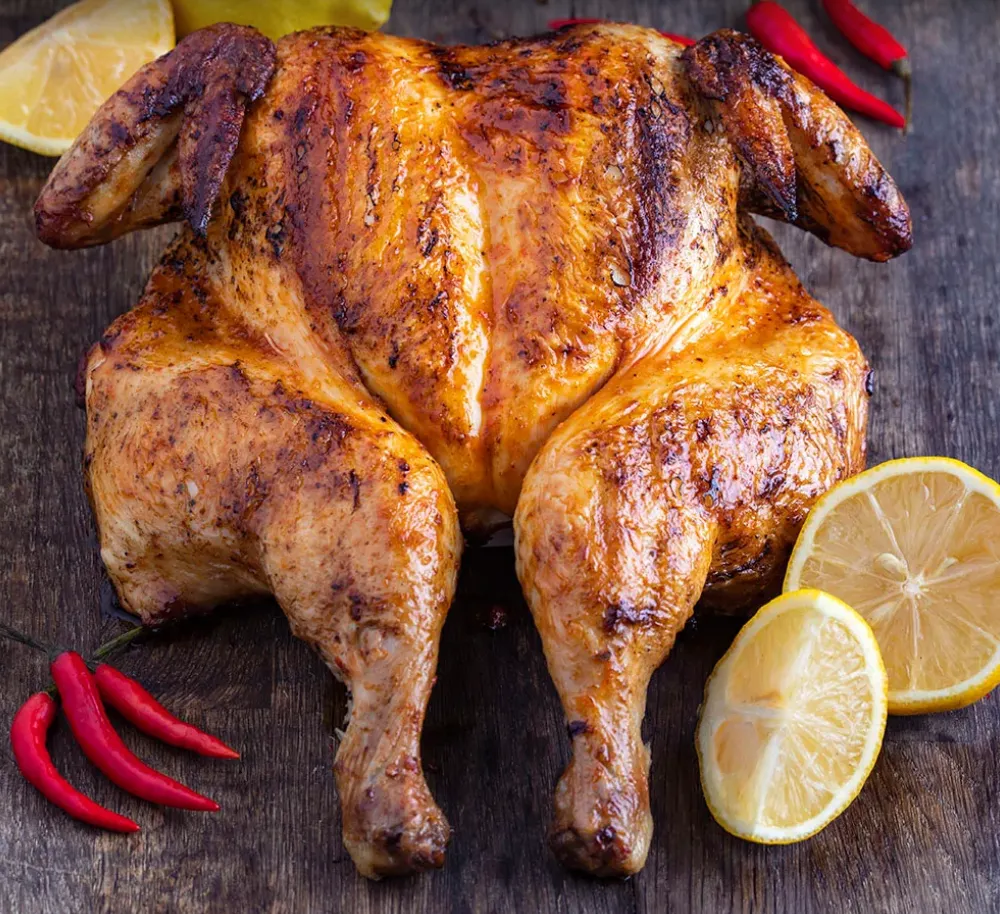 Our Lemon & Herb Chicken is a whole chicken with the bone left in tact, infused with a fresh, zesty marinade of lemon and fragrant herbs. The result is tender, succulent meat with a crisp, citrus kick—deliciously balanced and ideal for those who prefer flavour without the fire. Grill it, roast it, or braai it to perfection. Either way, you'll love it.